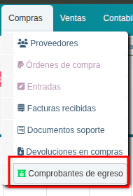 1. Ingresa a Compras -> Comprobantes de egreso.