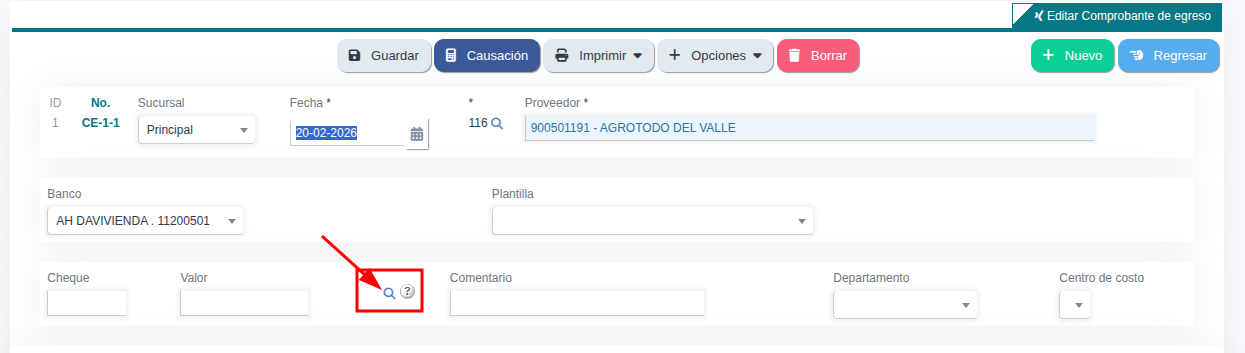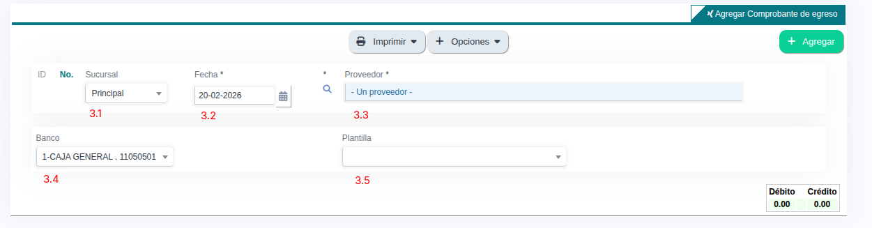 3.1.Sucursal:Con que sucursal va realizar el comprobante de egreso