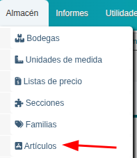 1. Ingresa a Almaćen -> Articulos