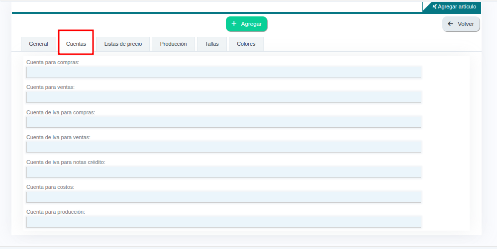 5. En la pestaña Cuentas puedes personalizar la contabilización del articulo.