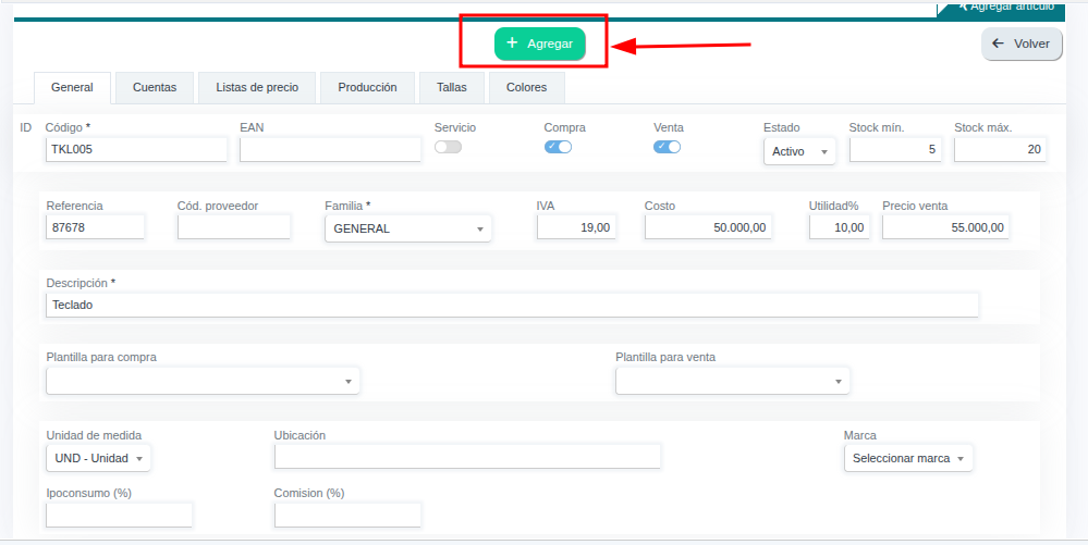 3.12 Unidad de medida: Debes asignar la unidad de medida del producto. No se puede dejar en blanco.