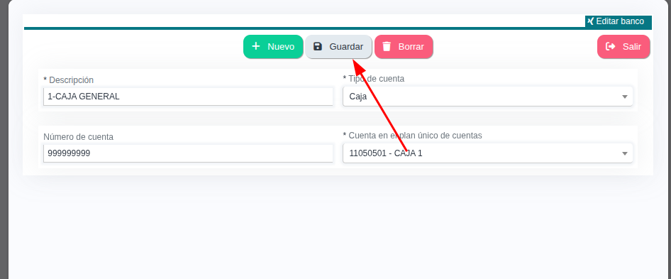 3. Cambia la información que necesites modificar y le das clic en el botón Guardar.